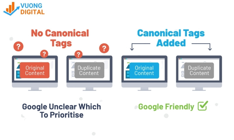 Trong đó, https://vuongdigital.com/bai-viet-goc/ chính là URL mà bạn muốn công cụ tìm kiếm coi là “bản gốc”.