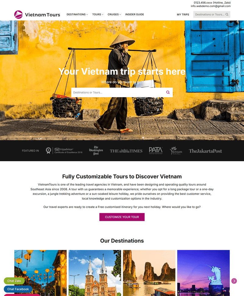 Khám phá hơn 20+ mẫu thiết kế website du lịch của Vương Digital dưới đây.