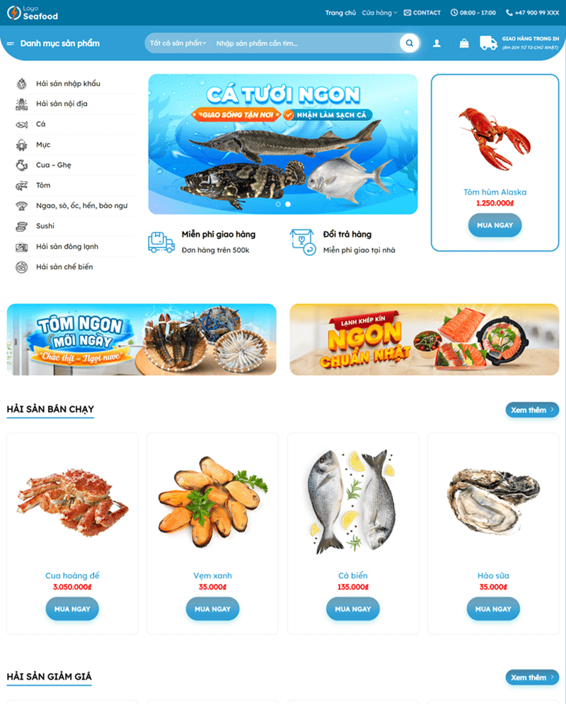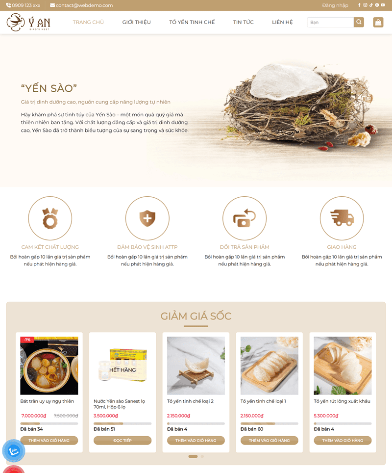 Với mẫu website thực phẩm do Vương Digital thiết kế, bạn sẽ có một giao diện sạch sẽ, tươi mới và đầy cảm hứng, giúp truyền tải chất lượng sản phẩm một cách chân thực và hấp dẫn. Màu sắc, hình ảnh và bố cục được tối ưu để làm nổi bật sự tươi ngon, nguồn gốc rõ ràng và giá trị dinh dưỡng — yếu tố quan trọng khiến khách hàng yên tâm khi mua hàng. Website được xây dựng theo chuẩn UX/UI, hỗ trợ phân loại sản phẩm rõ ràng, tìm kiếm nhanh, hiển thị giá và thông tin chi tiết dễ hiểu.