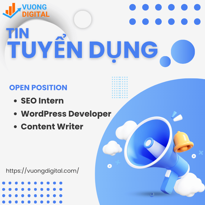 Vương Digital đang tìm kiếm những tài năng trẻ đam mê SEO, Content, Thiết kế Website và Digital Marketing để cùng phát triển trong môi trường năng động, sáng tạo và chuyên nghiệp. Chúng tôi đề cao tinh thần học hỏi, trách nhiệm và khát khao chinh phục mục tiêu.